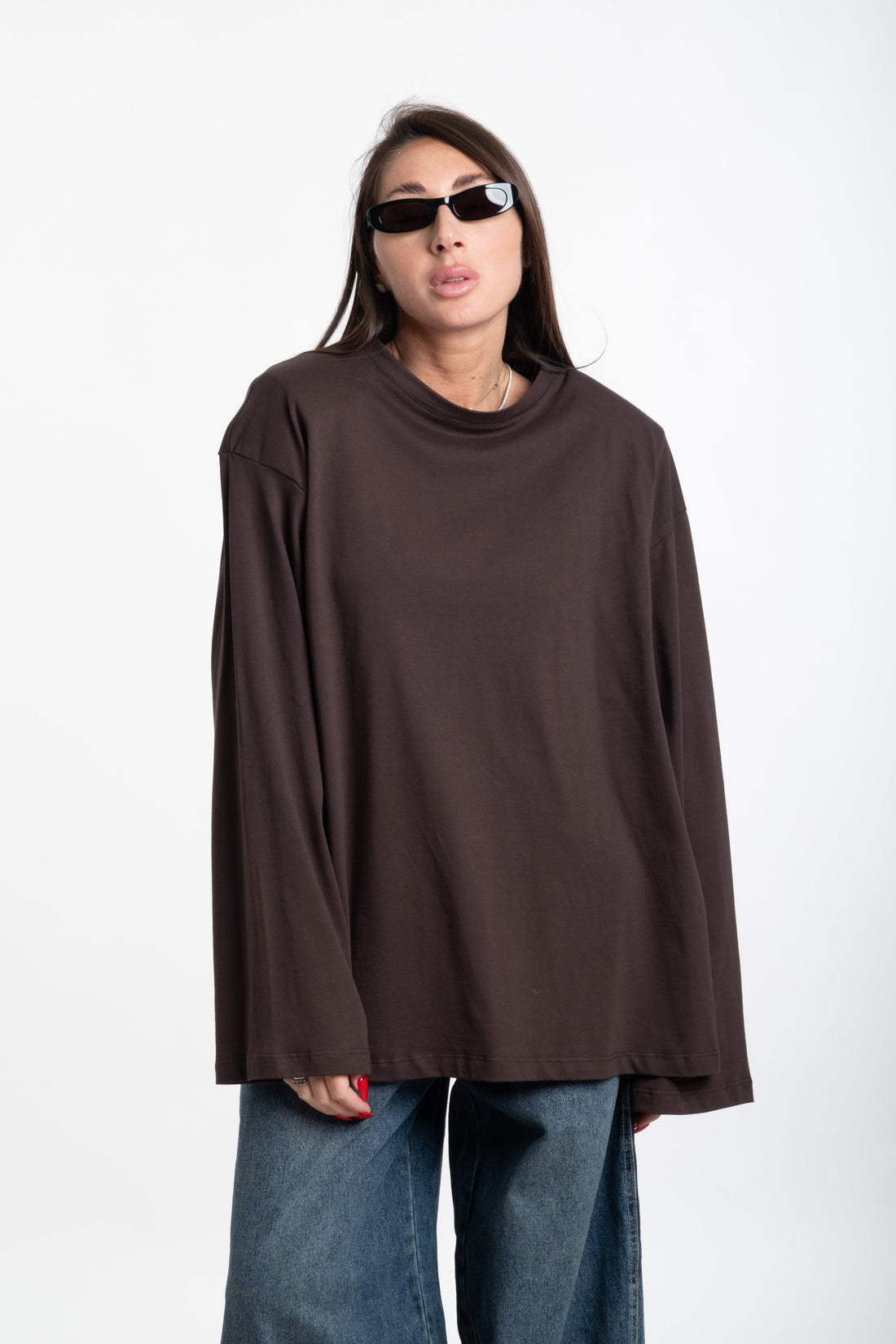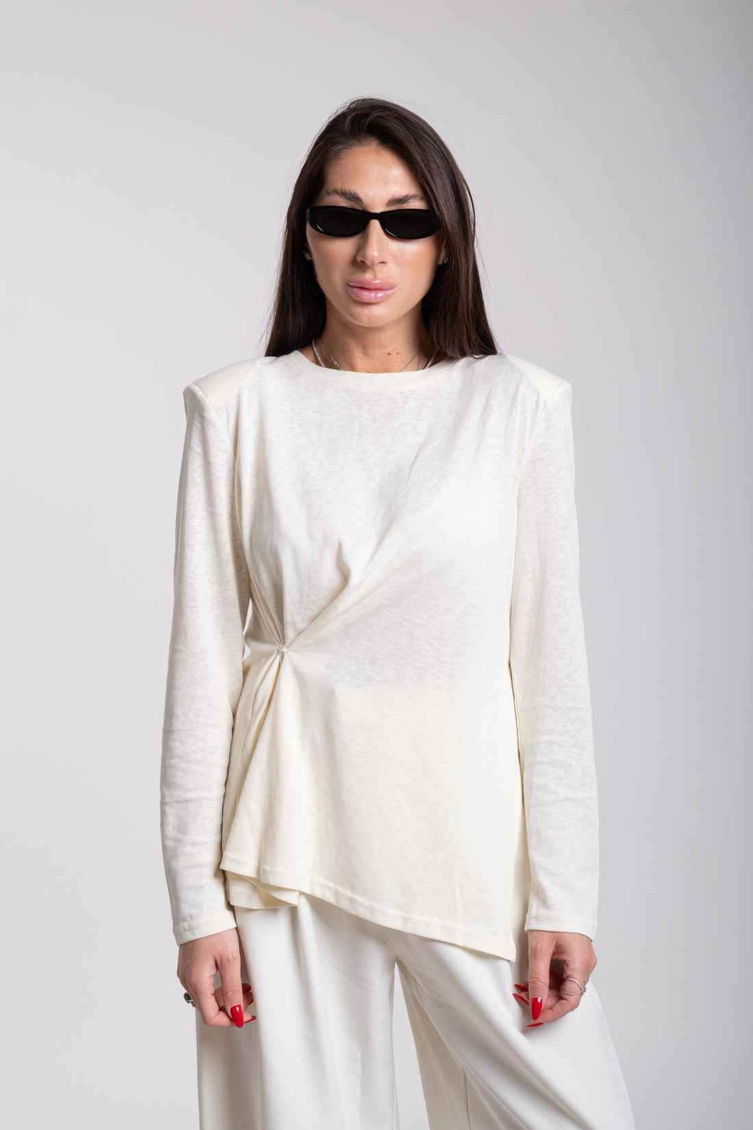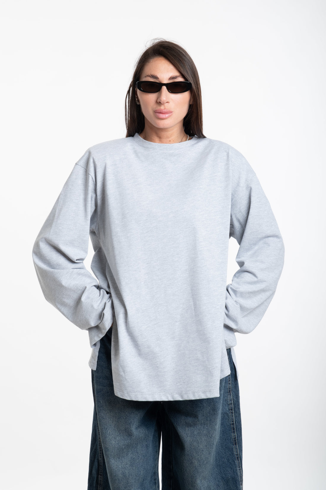 Maglia spallina manica lunga grigia
