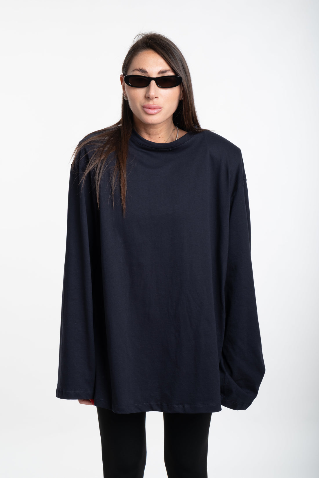 Maglia spallina manica lunga blu