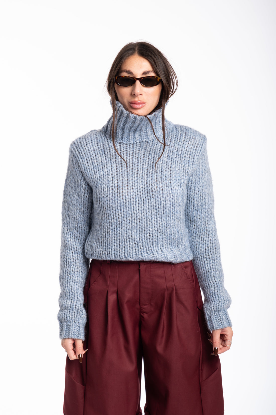 Pull treccia celeste