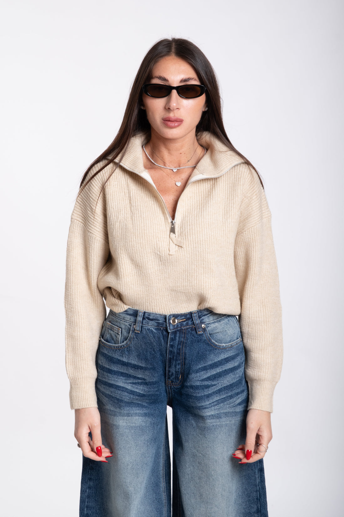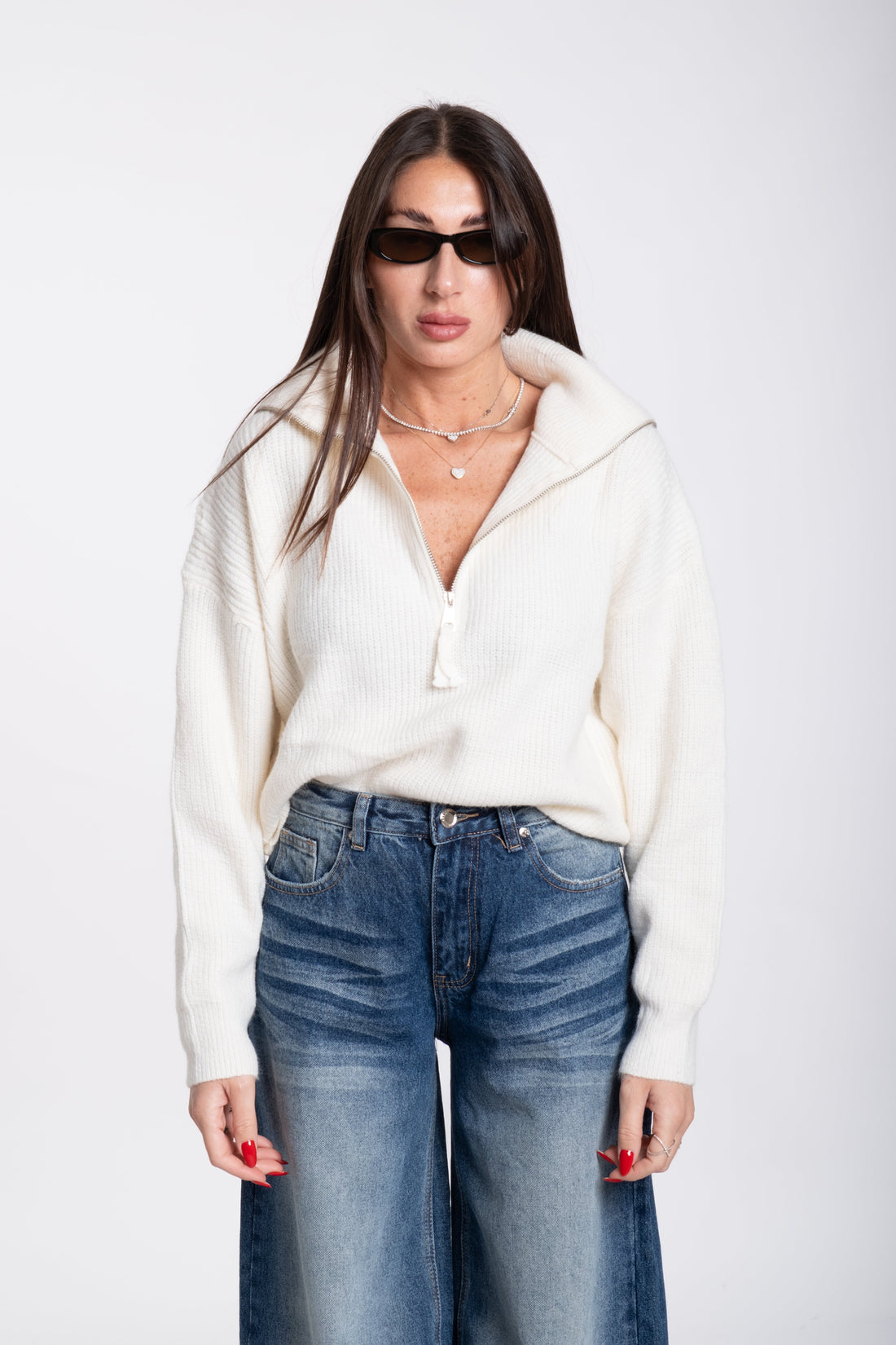 Pull zip bianco
